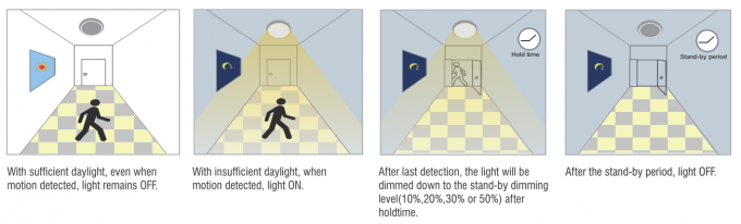 Daglichtdrempel | 2Lux/10Lux/30Lux/50Lux/80Lux/120Lux/Uitschakelen |
