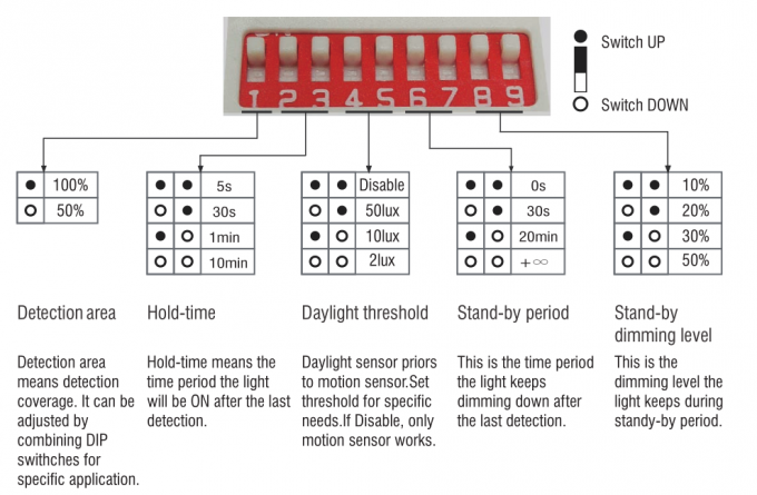 TUV,CE,RED,ROHSDimmen door 1-10V microgolfbewegingssensor 120-277VAC bediend 5,8GHz frequentie