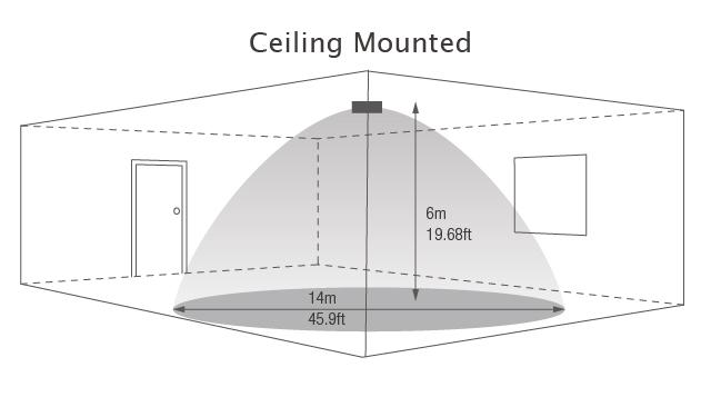 Detectiebereik | Max. ø14m (plafondmontage), Max. 10m (wandmontage) |